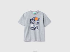 lysegrå Benetton kvinner t-skjorte i 100 % bomull med glittertrykk logo 20TRB447