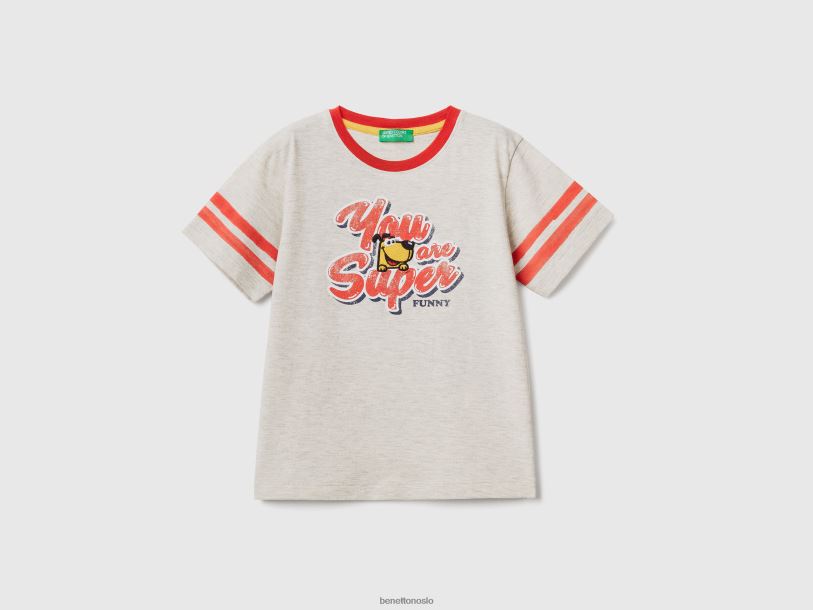 lysegrå Benetton barn t-skjorte med trykk og lapper 20TRB2191
