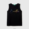 lysegrå Benetton barn tank topp med glitrende logotrykk 20TRB5241