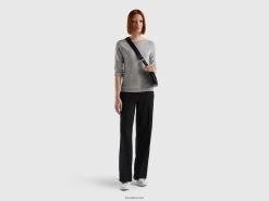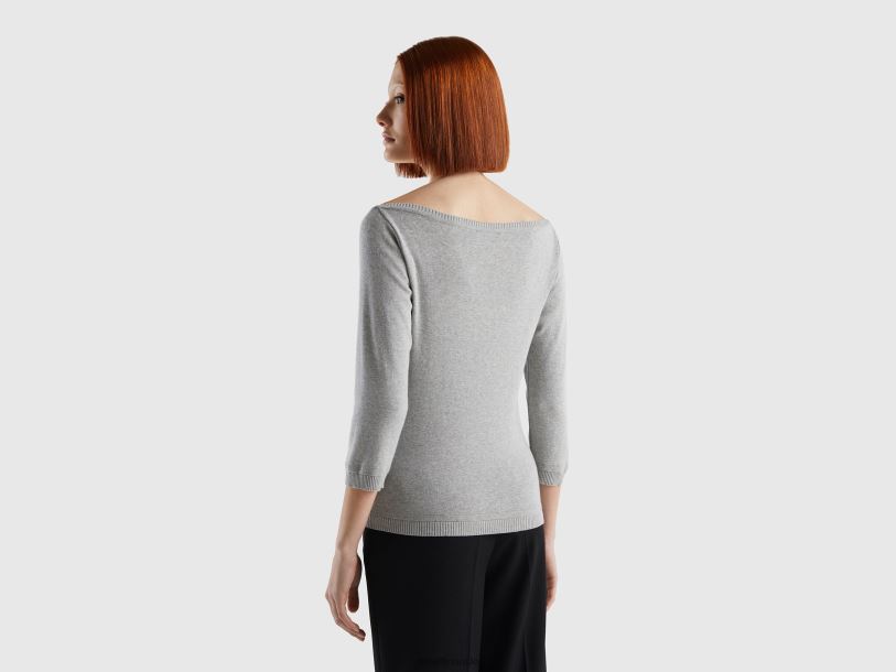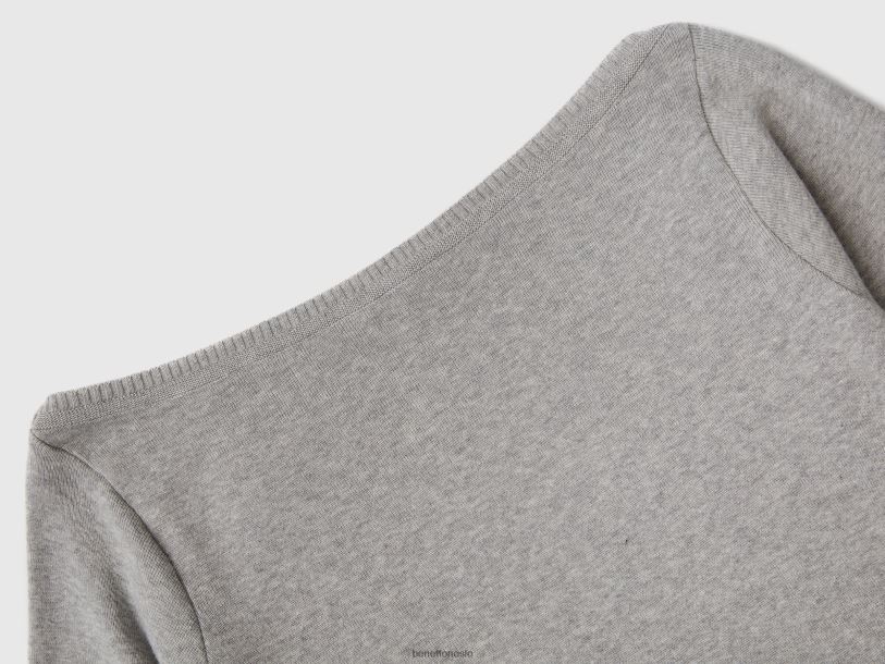 lysegrå Benetton kvinner 100% bomullsgenser med båthals 20TRB3674