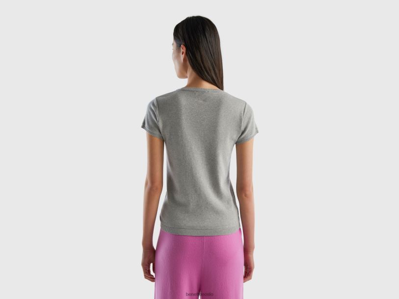 lysegrå Benetton kvinner kortermet genser i 100 % bomull 20TRB212