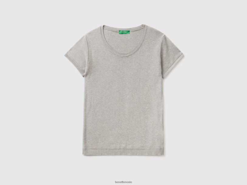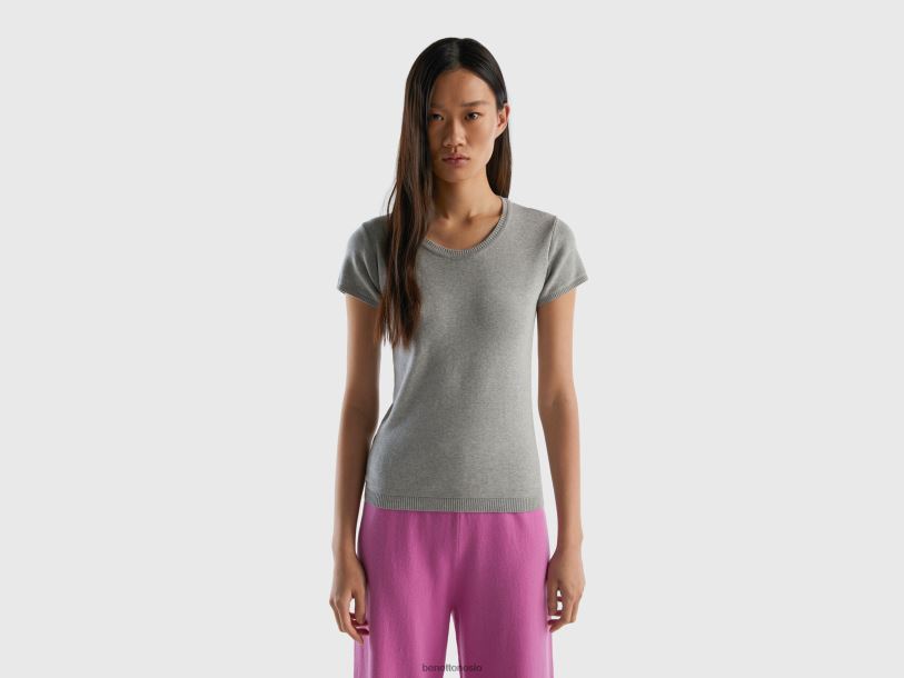 lysegrå Benetton kvinner kortermet genser i 100 % bomull 20TRB3654