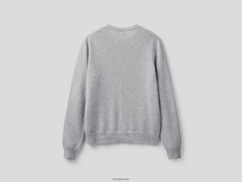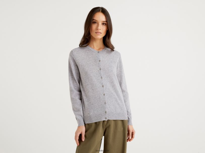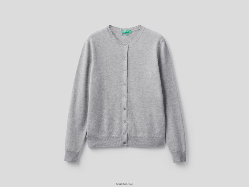 lysegrå Benetton kvinner lys grå cardigan med rund hals i ren merinoull 20TRB182
