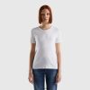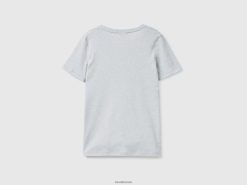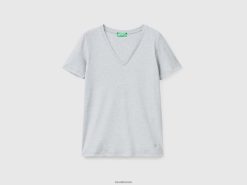 lysegrå Benetton kvinner t-skjorte i ren bomull med v-hals 20TRB3902