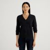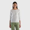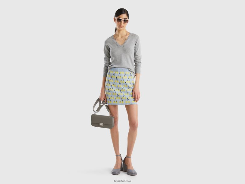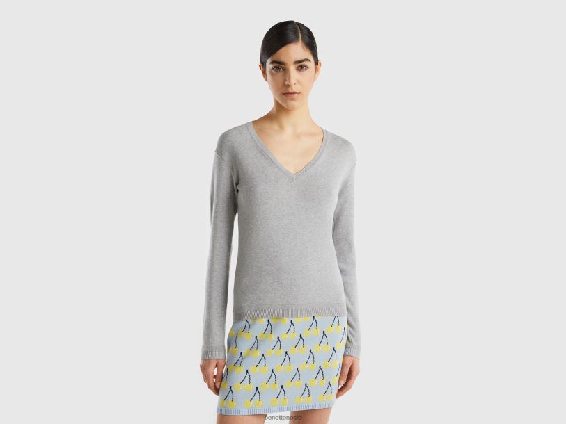 lysegrå Benetton kvinner v-halset genser i ren bomull 20TRB3639