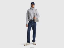 lysegrå Benetton menn Hettegenser i 100 % bomull 20TRB4528