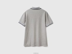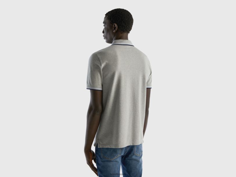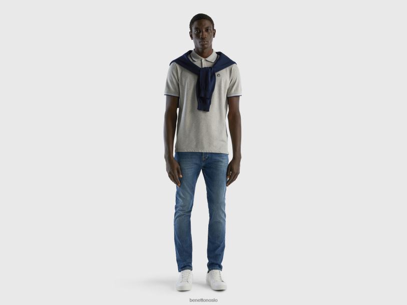 lysegrå Benetton menn kortermet stretch bomullspolo 20TRB1414