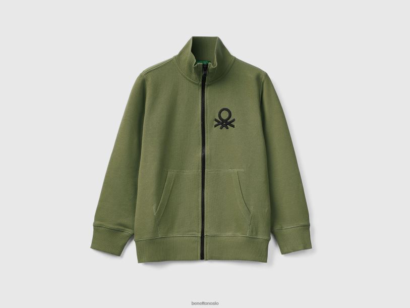 militærgrønt Benetton barn genser i ren bomull med glidelås 20TRB1835