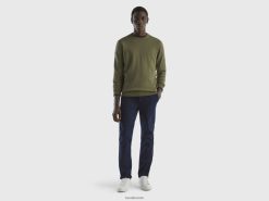 militærgrønt Benetton menn genser med rund hals i 100 % bomull 20TRB1132