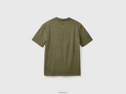 militærgrønt Benetton menn kortermet t-skjorte med splitt 20TRB4443
