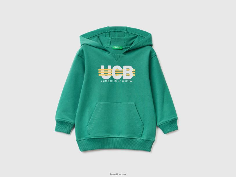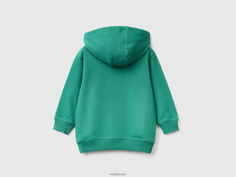 mørk grønn Benetton barn hettegenser i stretch, økologisk bomull 20TRB2269