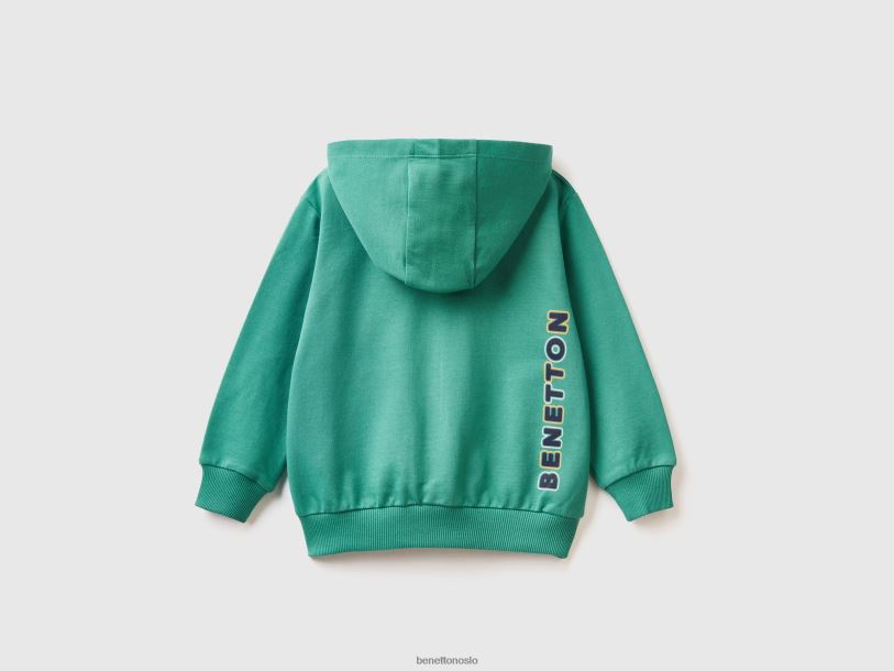 mørk grønn Benetton barn hettegenser med logo 20TRB2268