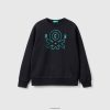 mørke blå Benetton barn colour block sweatshirt med trykk 20TRB4863