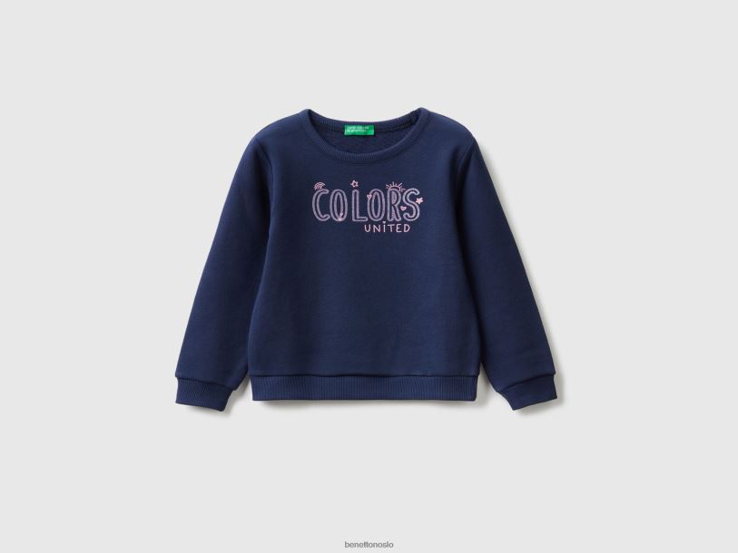 mørke blå Benetton barn genser i økologisk bomull med glitrende trykk 20TRB5642
