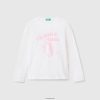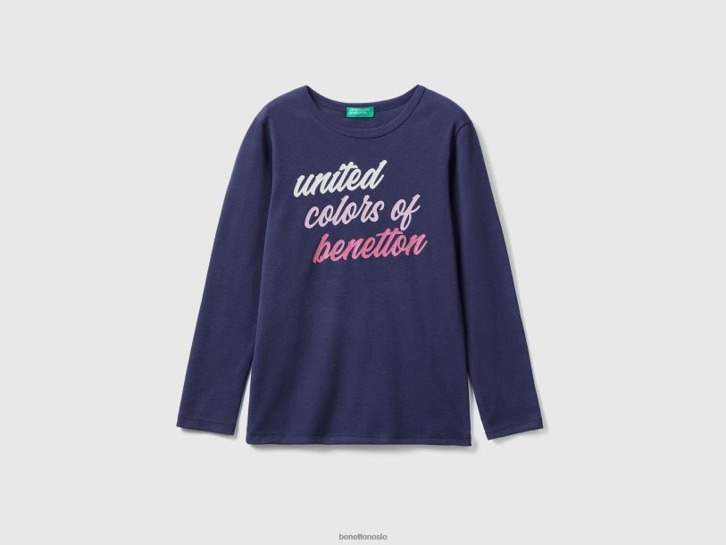 mørke blå Benetton barn langermet t-skjorte med glittertrykk 20TRB2447