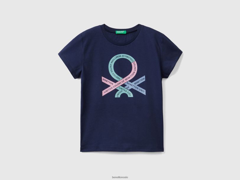 mørke blå Benetton barn t-skjorte med glitrende logo i økologisk bomull 20TRB5304