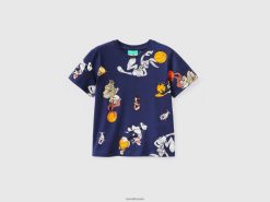 mørke blå Benetton barn t-skjorte med space jam-trykk 20TRB2225