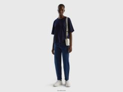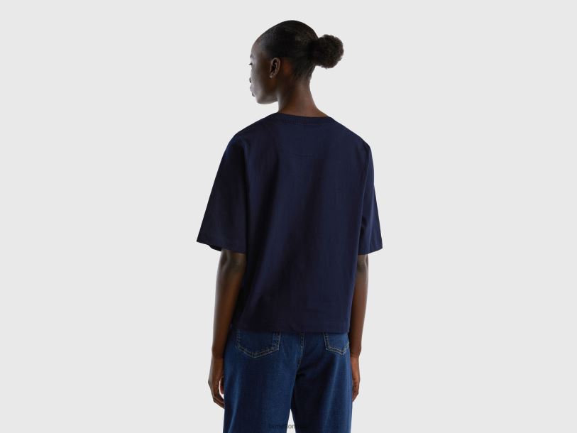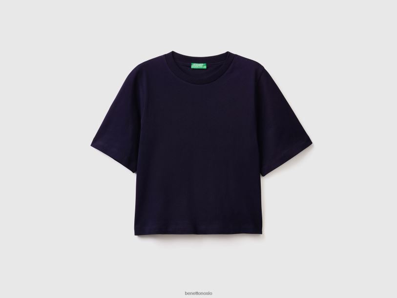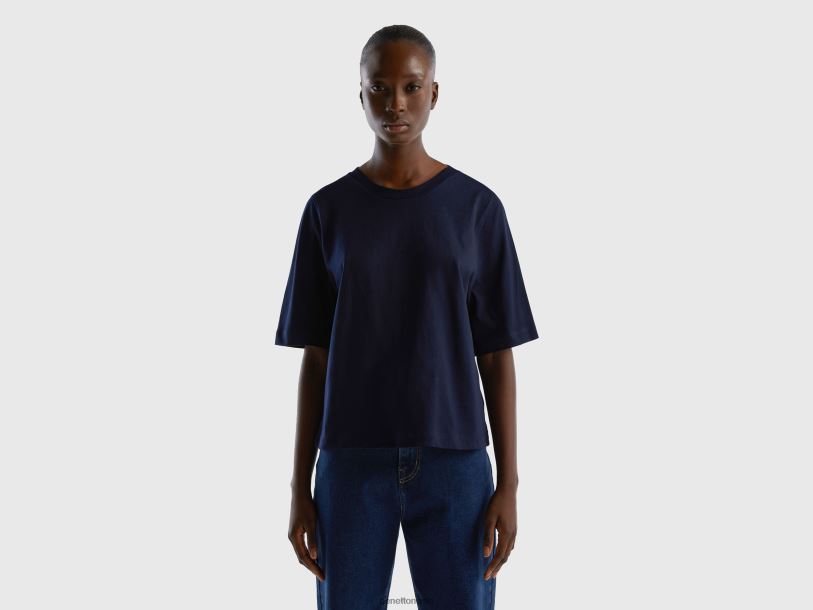 mørke blå Benetton kvinner 100% bomull t-skjorte i boxy fit 20TRB3905
