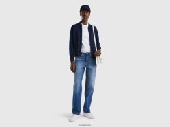 mørke blå Benetton kvinner cardigan i boxy passform med glidelås 20TRB49