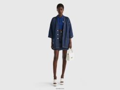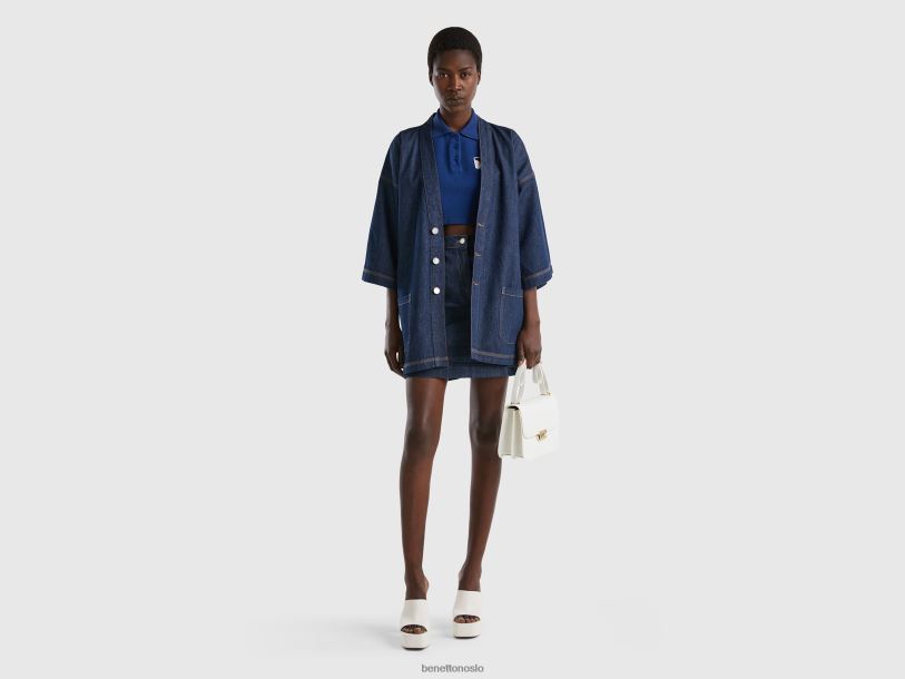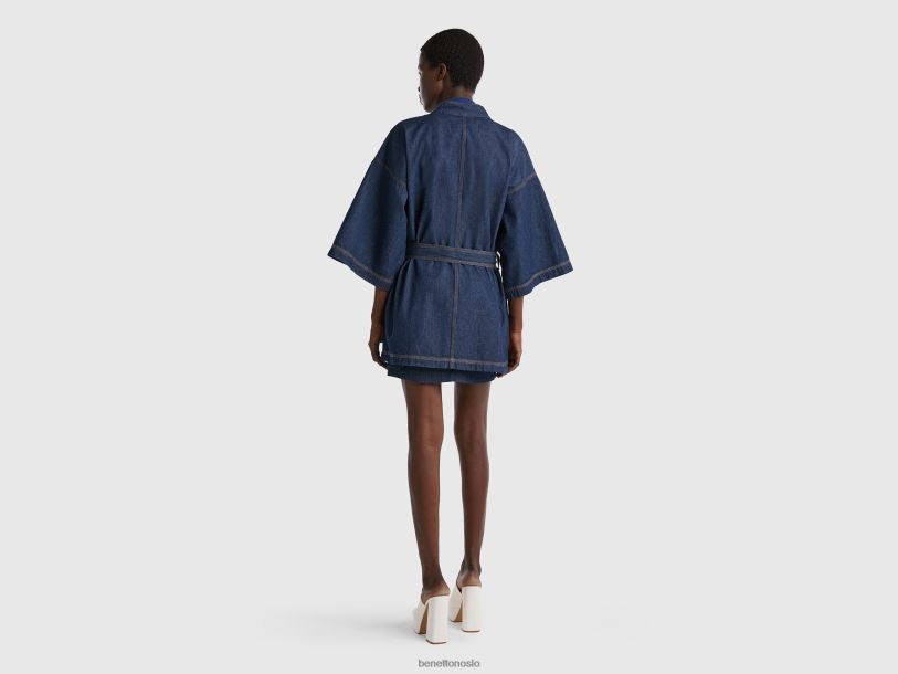mørke blå Benetton kvinner chambray kimono jakke 20TRB265