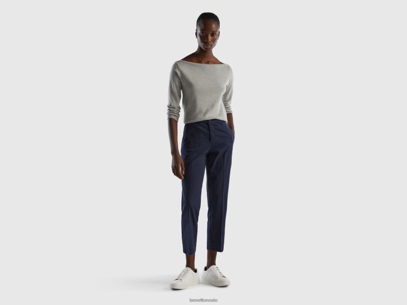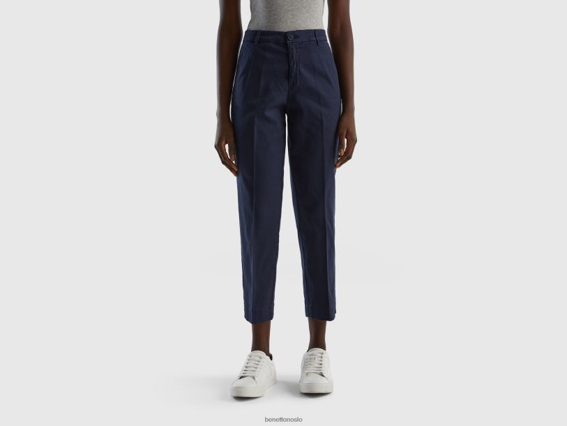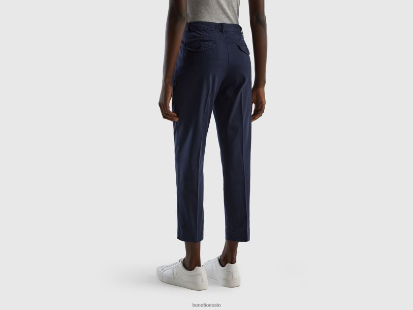 mørke blå Benetton kvinner cropped chinos i stretchbomull 20TRB649