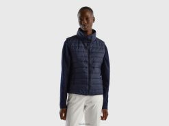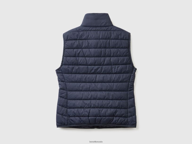 mørke blå Benetton kvinner ermeløs pufferjakke med resirkulert vatt 20TRB280