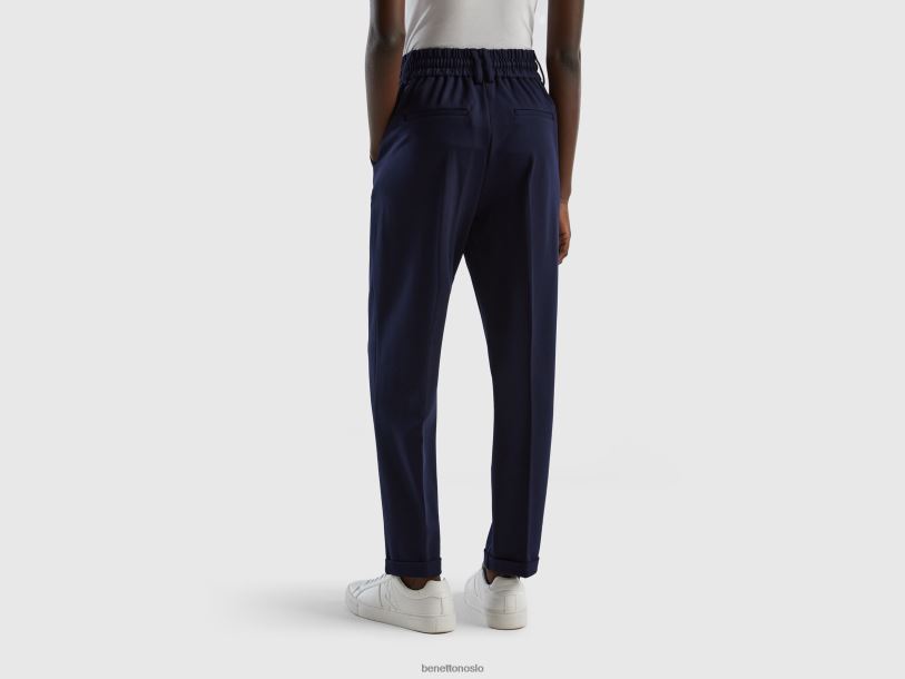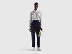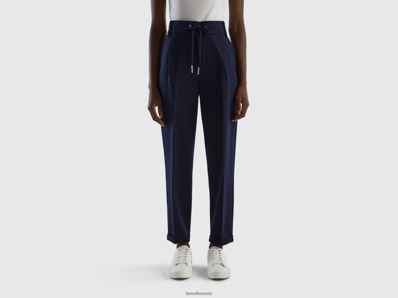 mørke blå Benetton kvinner garnfarget bukse med snøring 20TRB656