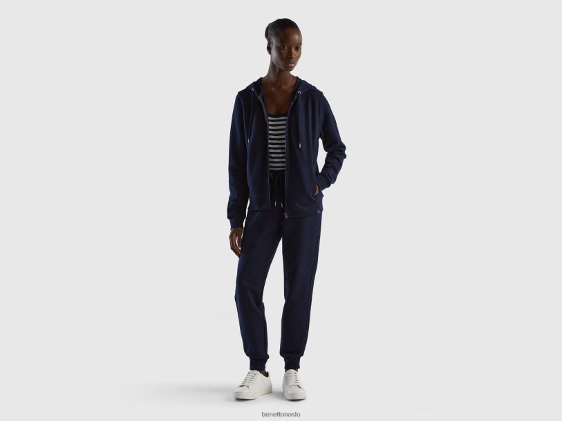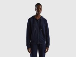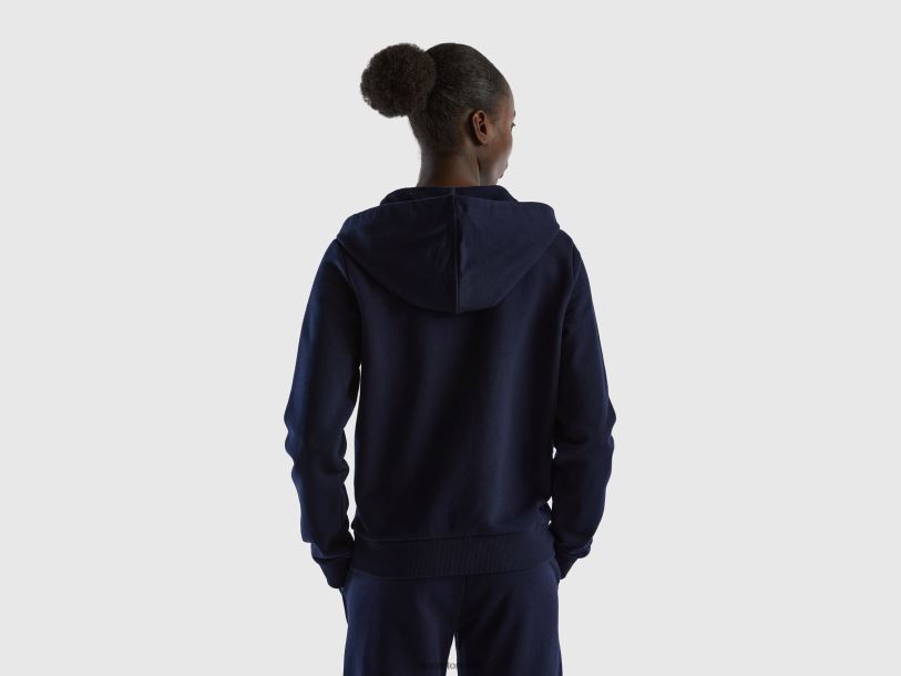 mørke blå Benetton kvinner Genser i 100 % bomull med glidelås og hette 20TRB3773