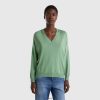 mørke blå Benetton kvinner genser i linblanding med 3/4-ermer 20TRB73