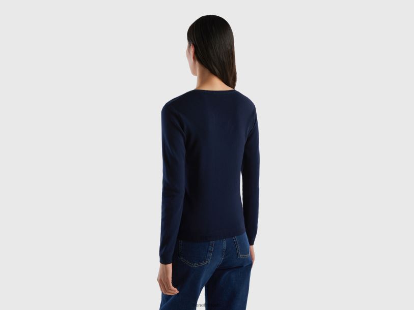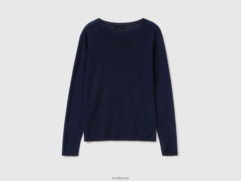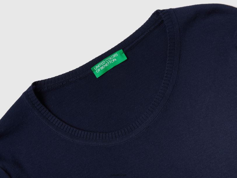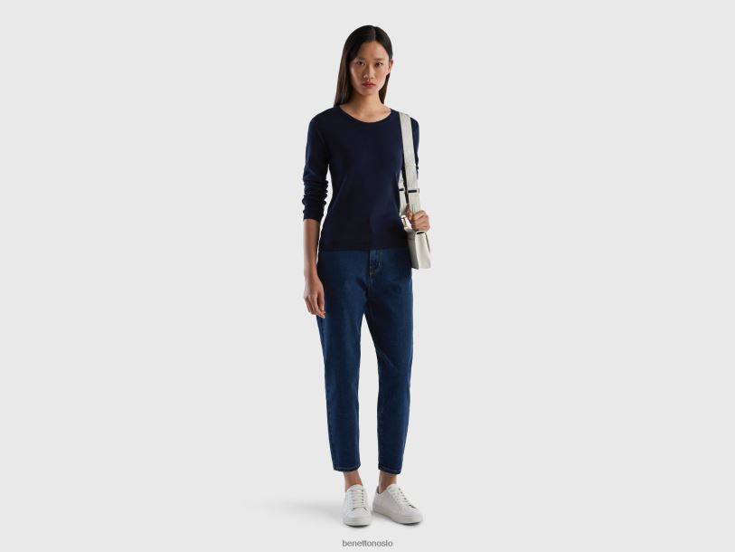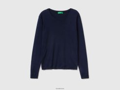 mørke blå Benetton kvinner genser med rund hals i ren bomull 20TRB202