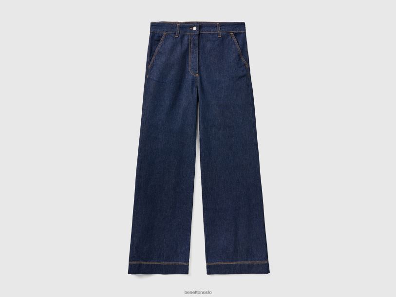 mørke blå Benetton kvinner jeansbukser med brede ben 20TRB617