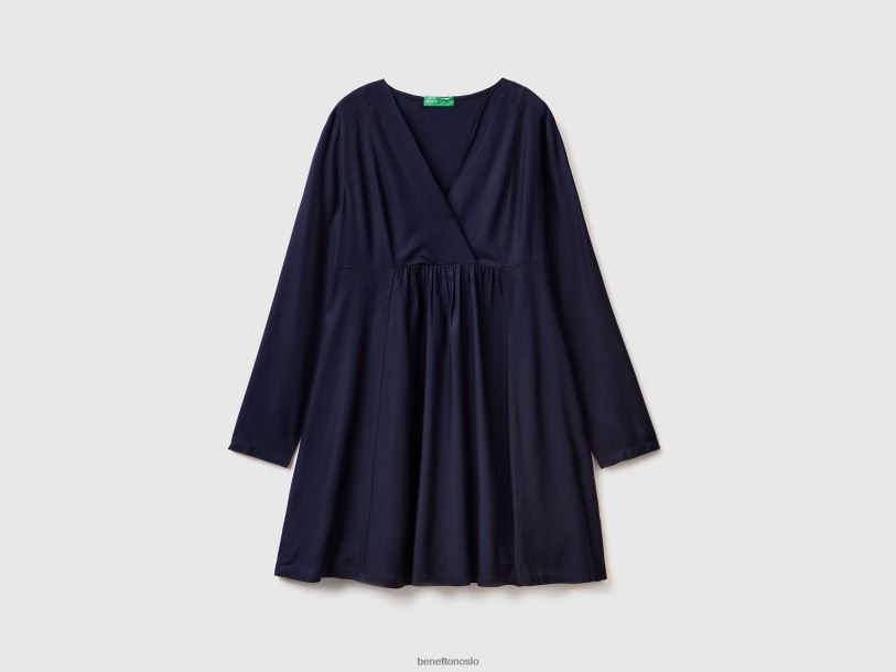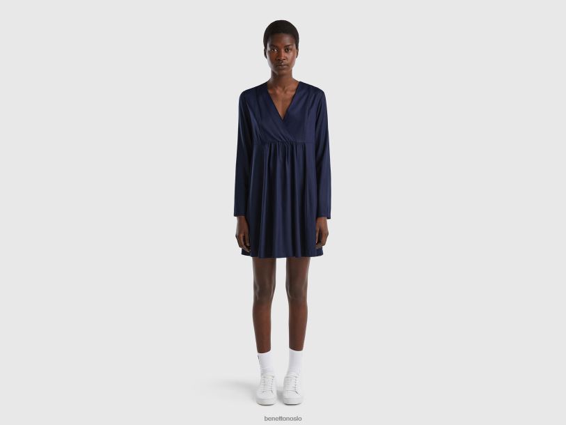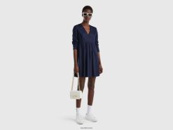 mørke blå Benetton kvinner kort kjole i bærekraftig viskose 20TRB4017