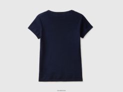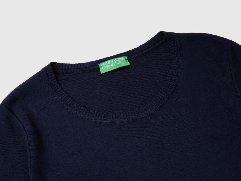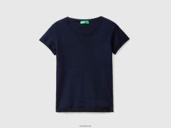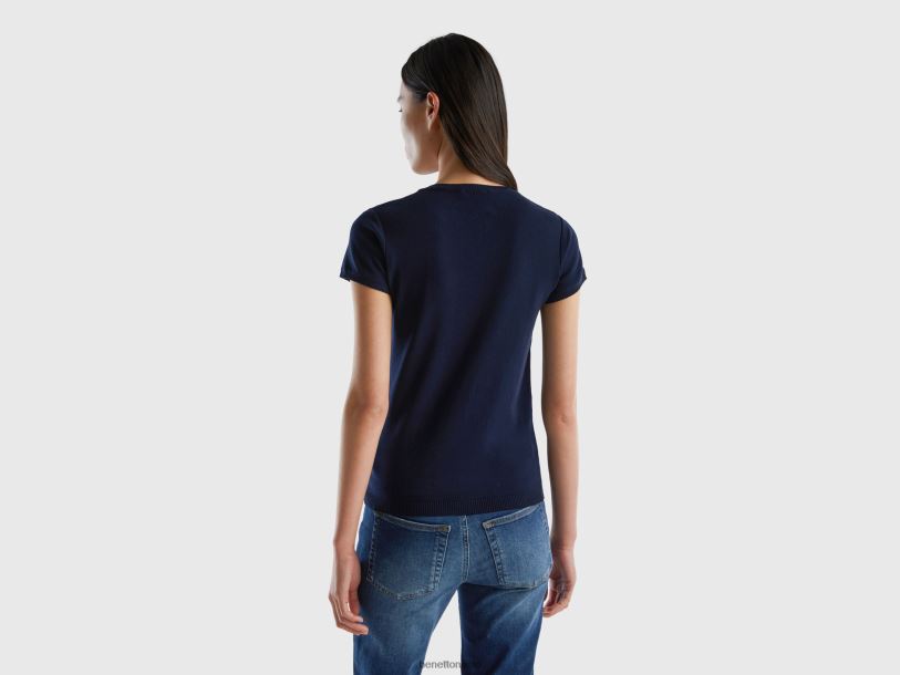 mørke blå Benetton kvinner kortermet genser i 100 % bomull 20TRB191