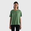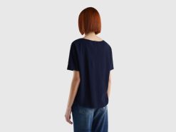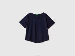 mørke blå Benetton kvinner kortermet t-skjorte i lett bomull 20TRB383