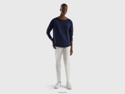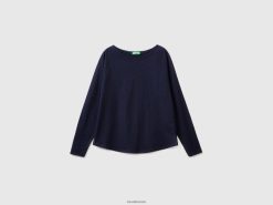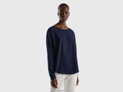 mørke blå Benetton kvinner langermet t-skjorte i ren bomull 20TRB319