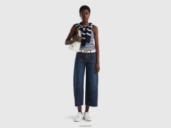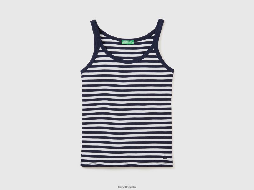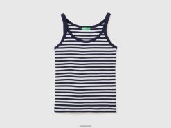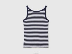 mørke blå Benetton kvinner mørkeblå stripete tank topp i 100% bomull 20TRB3949