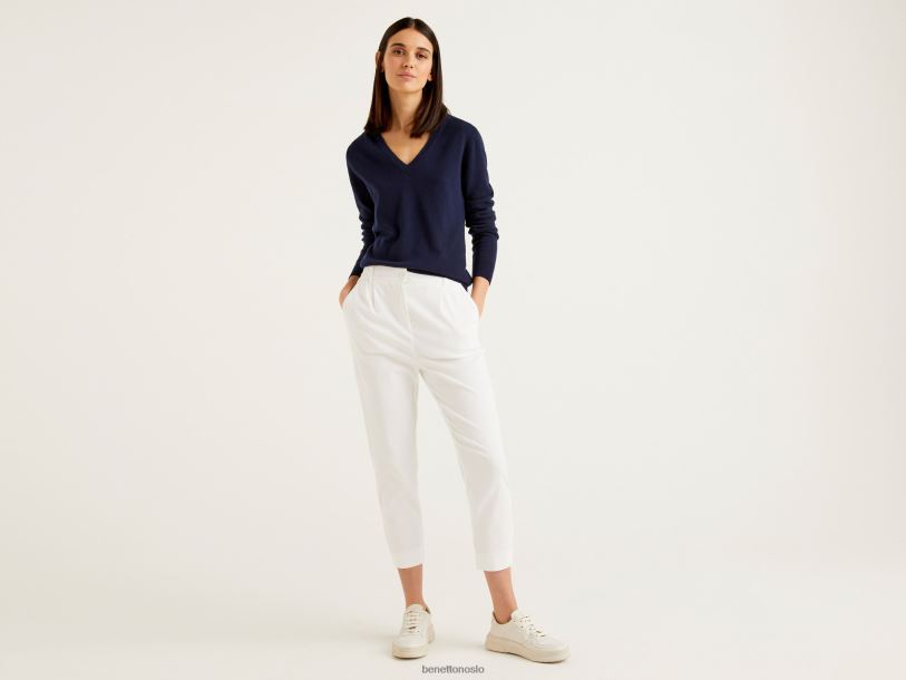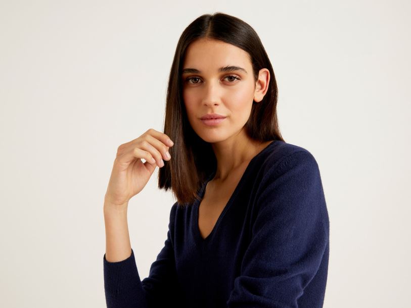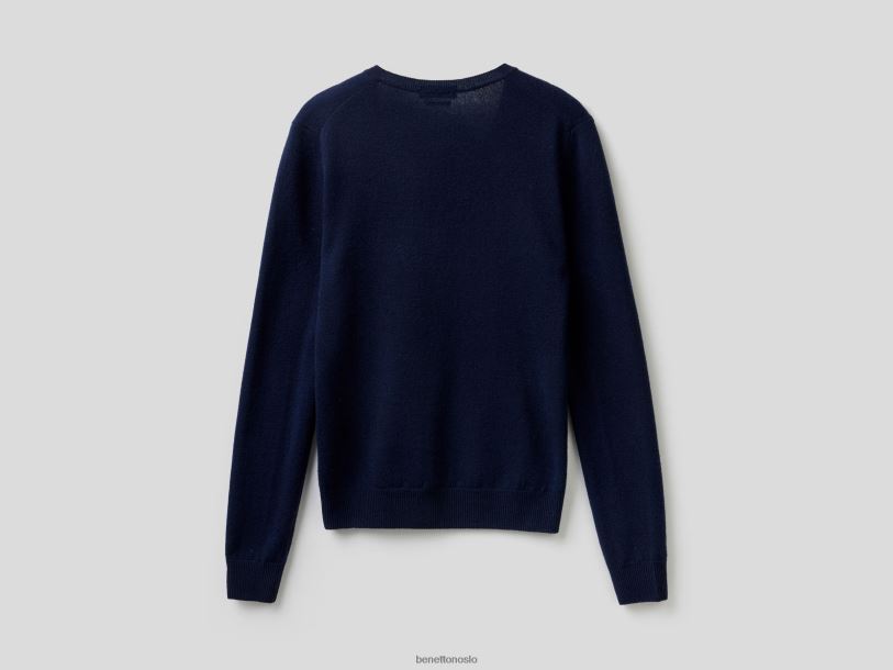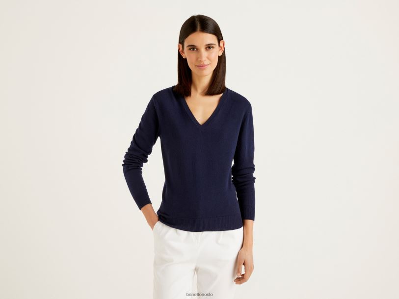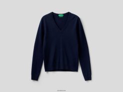 mørke blå Benetton kvinner mørkeblå v-halsgenser i ren merinoull 20TRB181