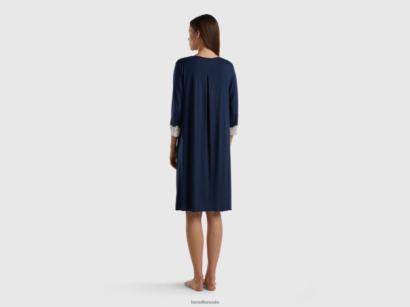 mørke blå Benetton kvinner nattskjorte med blondedetaljer 20TRB1055