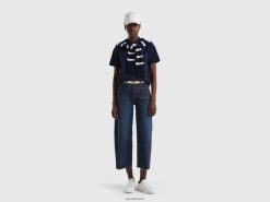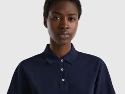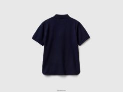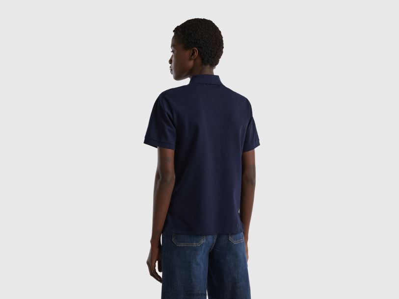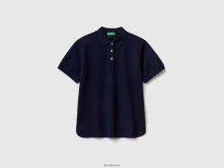 mørke blå Benetton kvinner polo i stretch økologisk bomull 20TRB333