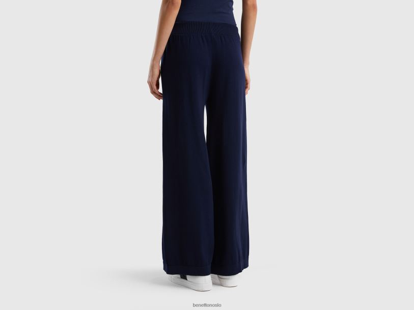 mørke blå Benetton kvinner strikke vide bukser 20TRB4057