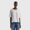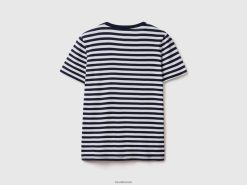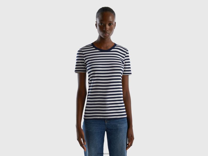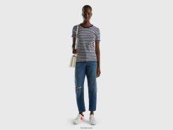 mørke blå Benetton kvinner stripete t-skjorte med rund hals 20TRB3946