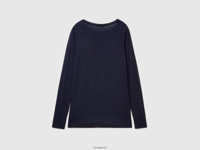 mørke blå Benetton kvinner t-skjorte i bærekraftig stretch viskose 20TRB3845