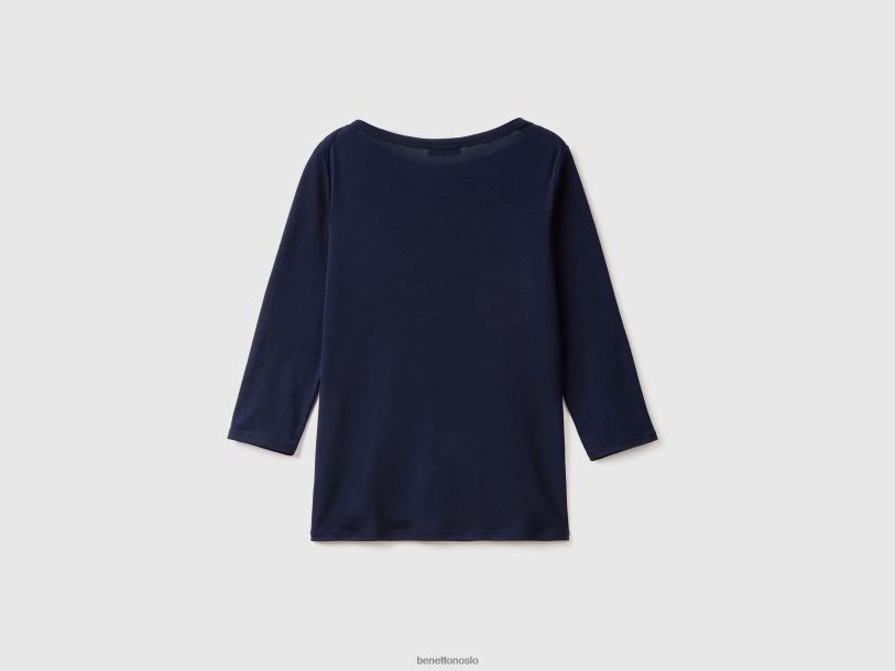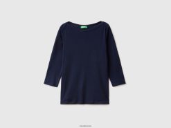mørke blå Benetton kvinner t-skjorte med båthals i 100 % bomull 20TRB3941