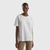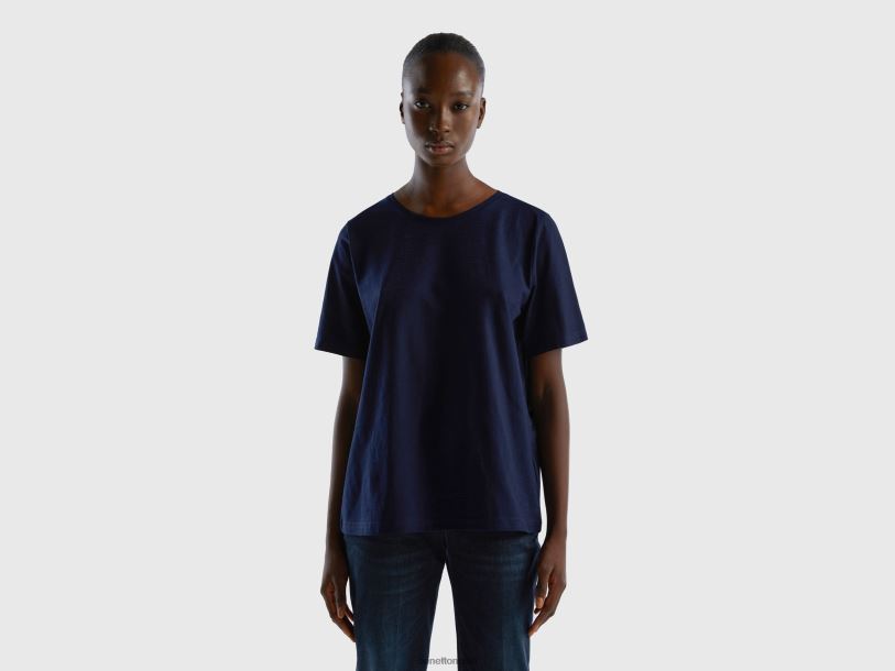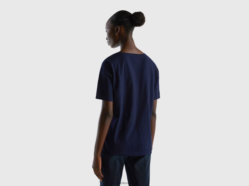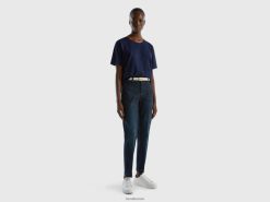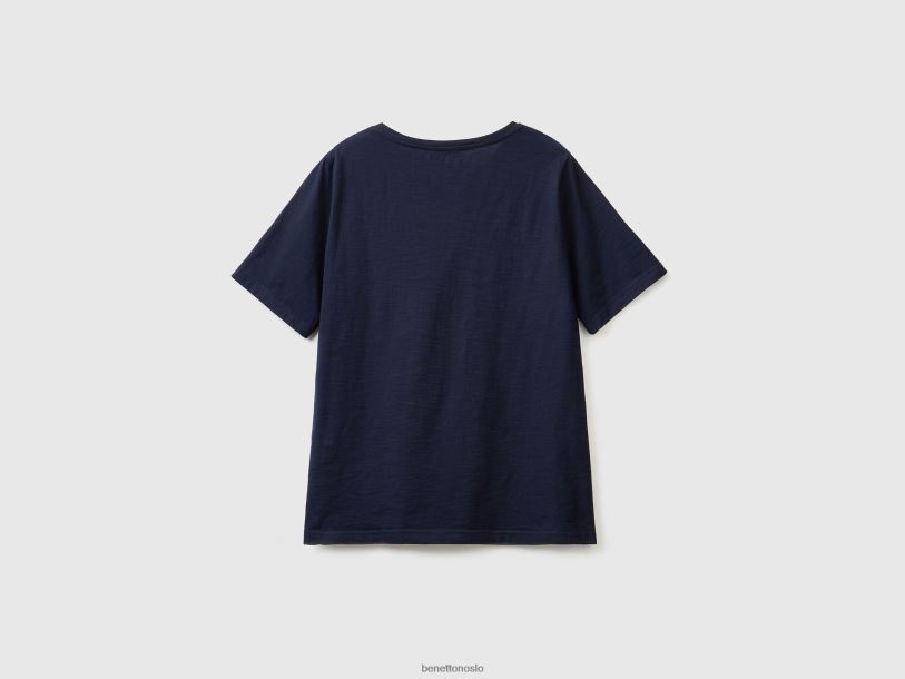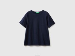mørke blå Benetton kvinner T-skjorte med rund hals i slub bomull 20TRB3861