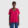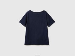 mørke blå Benetton kvinner V-hals t-skjorte i slub bomull 20TRB3792
