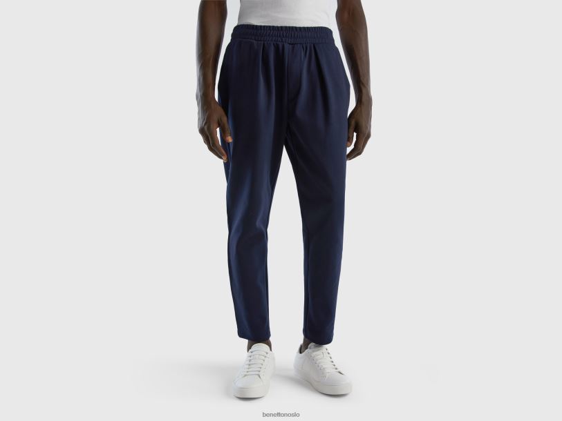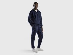 mørke blå Benetton menn joggebukse med snøring i bomullsblanding 20TRB4633