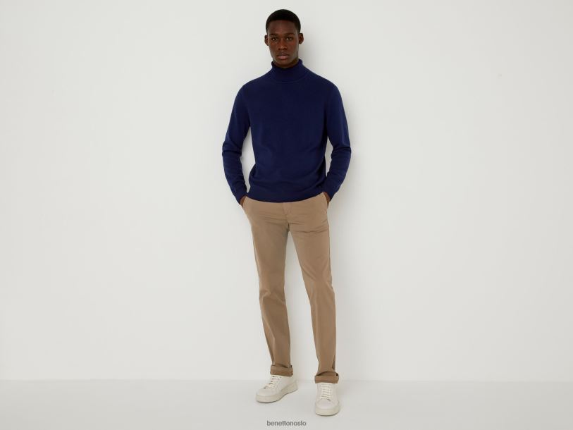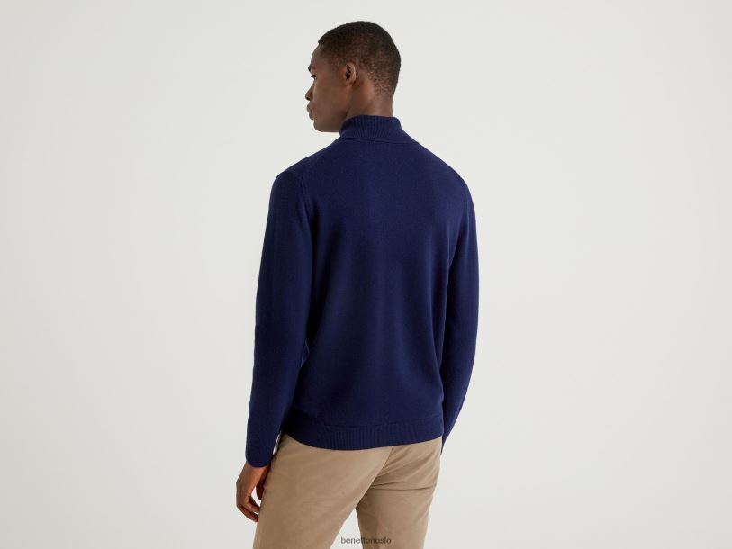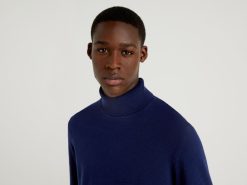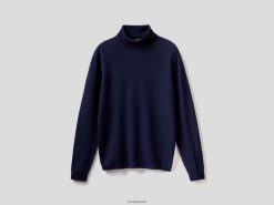 mørke blå Benetton menn mørkeblå turtleneck i ren merinoull 20TRB1167