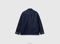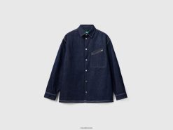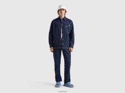 mørke blå Benetton menn oversized skjorte i chambray 20TRB4547