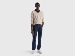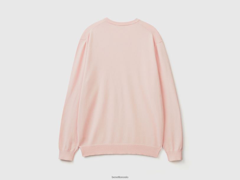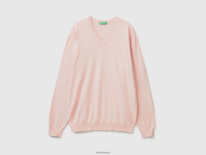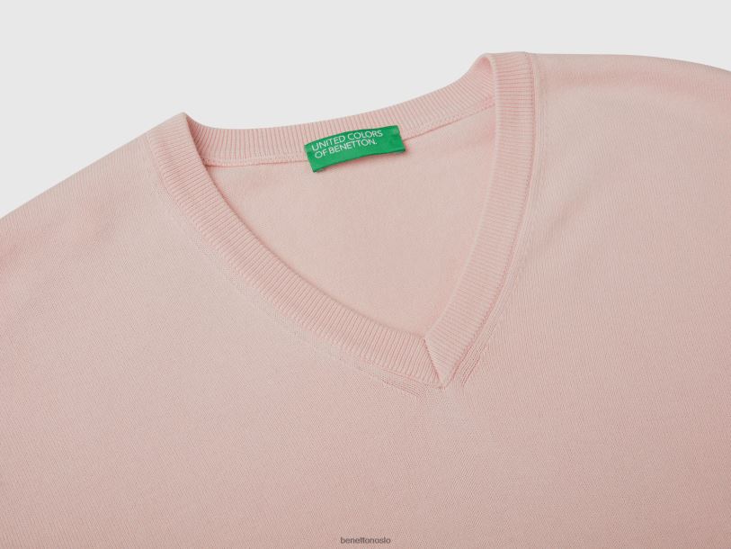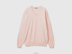 myk rosa Benetton menn v-halset genser i ren bomull 20TRB4394