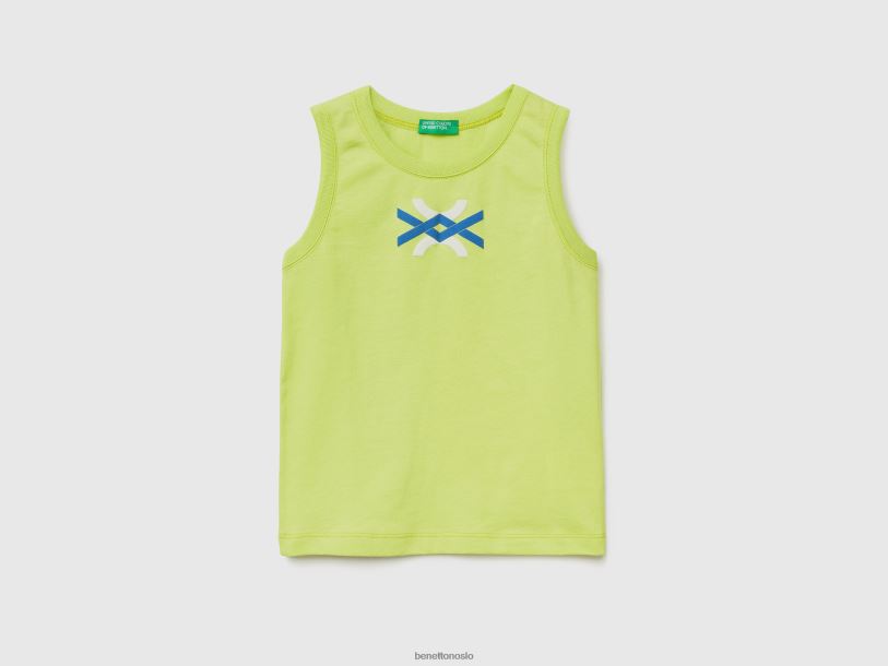 neongrønn Benetton barn tank topp i 100 % økologisk bomull med logo 20TRB2228